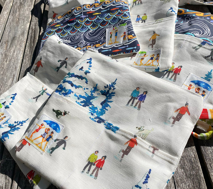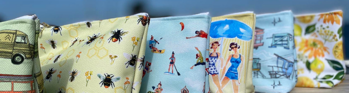 Over the shoulder delightful skater and wave purses, with zippers and handy outside phone pockets.