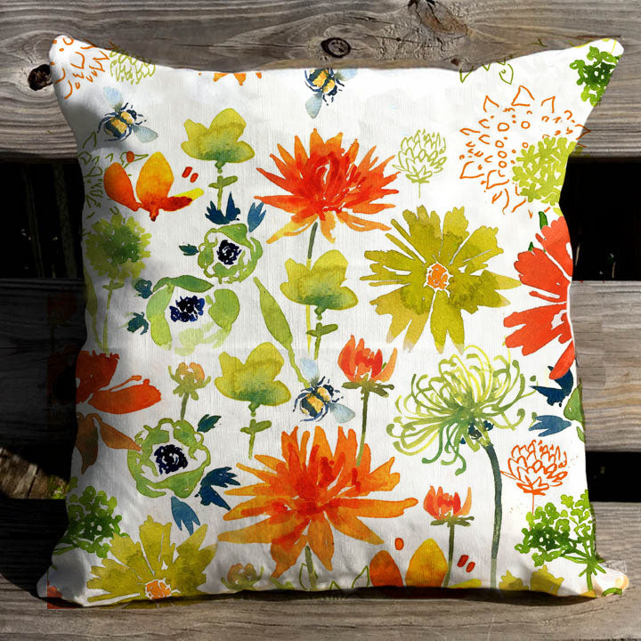 agoodcatchSoft warm tones for this "Spread your Wings" Outdoor Pillow. Reverse side features Vibrant warm watercolor floral to coordinate. Perfect for your garden chairs or porch. Made with Recycle canvas for outdoor use 18 x 18'' Machine washable with zipper. Digitally Printed. Available as a case only too!