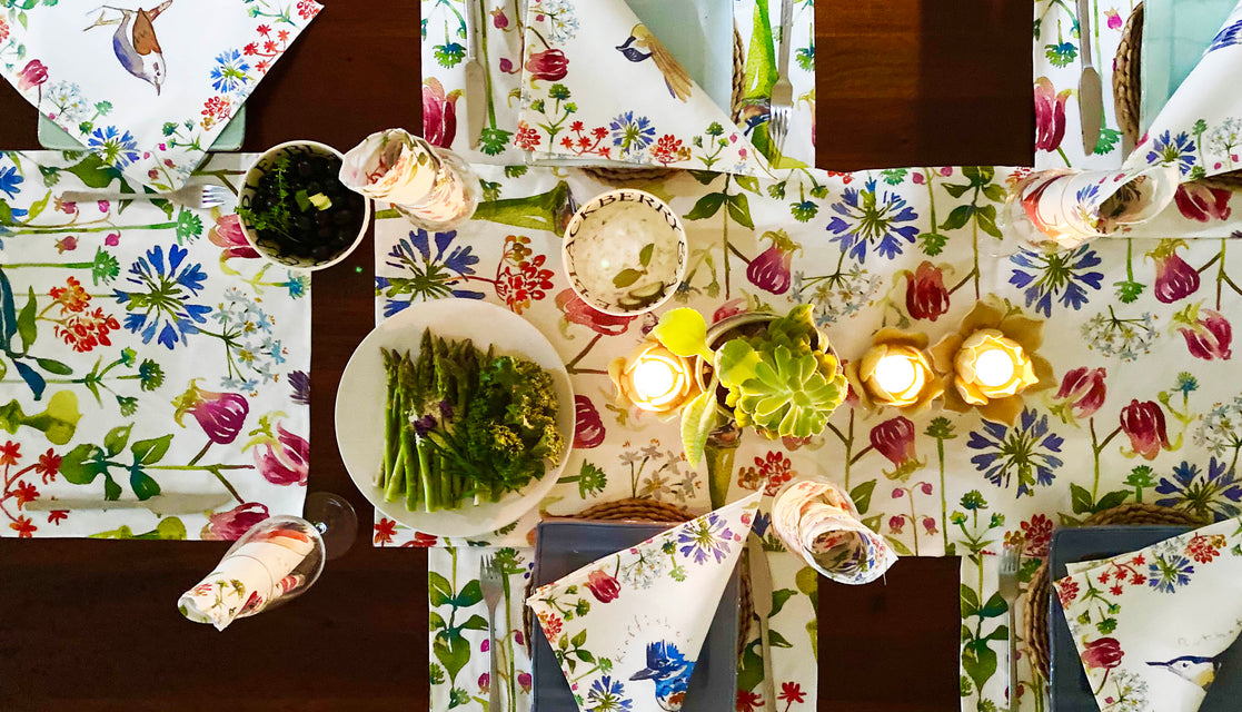 Individual napkins are a fun way of making everyone at your party, special. Match with placemats, Tablerunner, apron and pot holder for a full party experience.