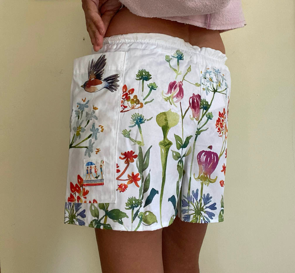 Soft, Organic Cotton Lounge Boxers. Super comfy, wear over leggings in the outdoors! These Boxers feature Native North Carolina Flowers including the picture plant and Clematis. Made in the Outer Banks