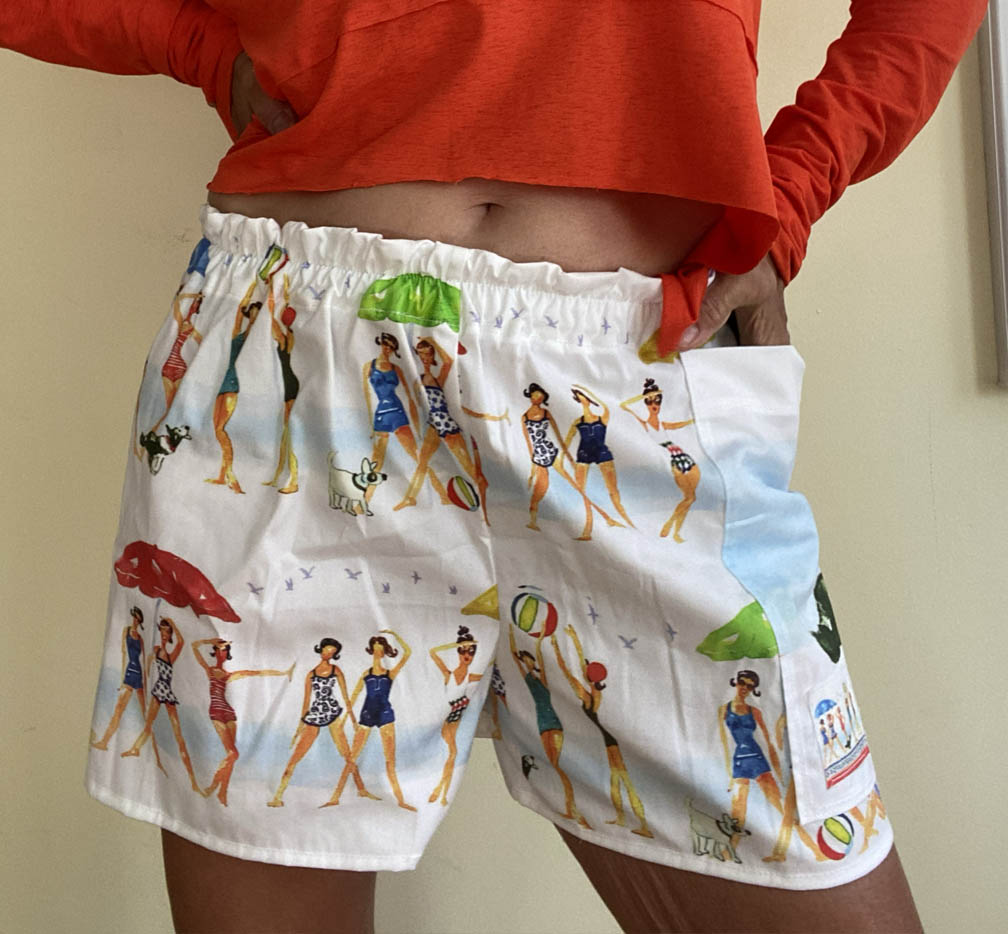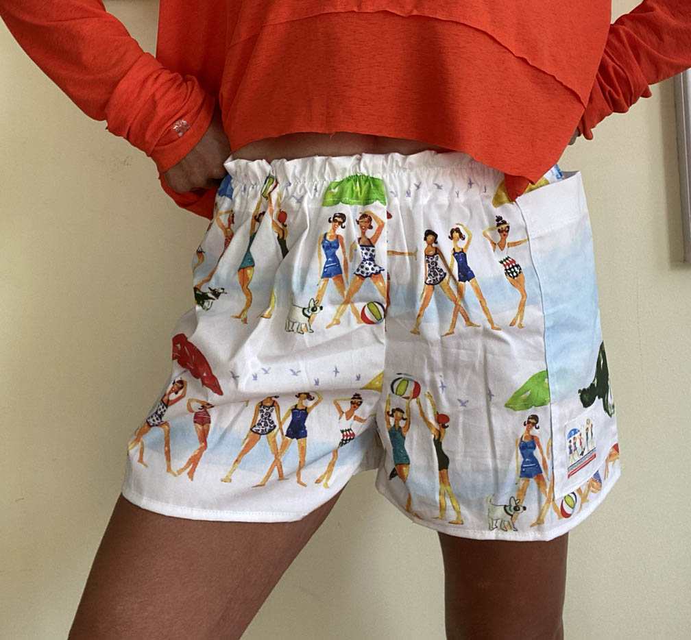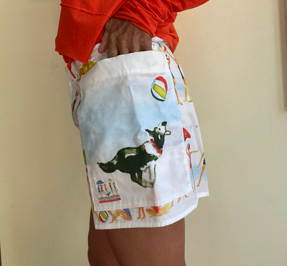 The cutest boxers in anyones wardrobe! Vintage Beach girls are so fun and playful. Made from Organic cotton they are soft, luxurious and comfy featuring frisbee catching beach dog on the outer pocket. Made in the Outer banks. So cute for anyone.